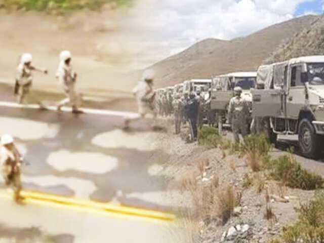 Como primera accione de los militares acompañados de vehículos porta tropas fue desbloquear las vías que unen a las regiones de Puno, Moquegua y Tacna.