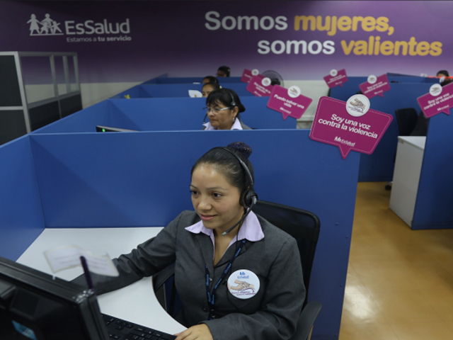 ¡Contigo mujer! La línea 107 opción 6 de Essalud, está a disposición para atender llamadas por violencia contra la mujer en español, quechua y aimara. La central está disponible las 24 hora del día, los siete días de semana y recibe 20 llamadas aproximadamente cada día. Se trata de un servicio gratuito para aseguradas y no aseguradas.