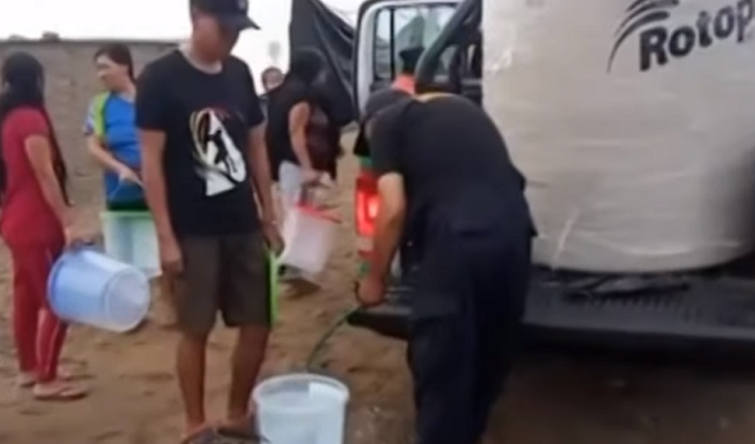 Mientras que durante la tarde, pese a la persistente lluvia, ADRA y Panamericana Televisión comenzaron a repartir un aproximado de 20 litros de agua potable a varios asentamientos humanos de La esperanza.