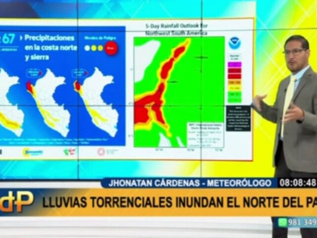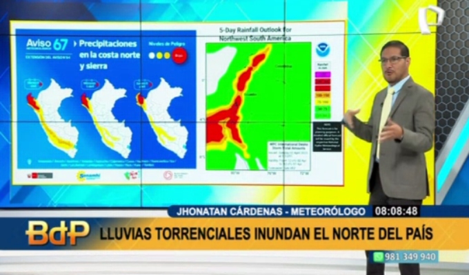 El ingeniero metereólogo sostuvo que todavía quedan varios días más con "potencial de precipitaciones importantes", en los que "Tumbes , Piura y Lambayequue son las regiones con el estado más crítico de alerta".