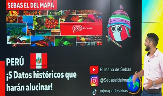 El ingeniero naval Sebastián Chumbe, youtuber y creador del canal "El Mapa de Sebas", visitó el set de Buenos Días Perú (BDP) para compartir cinco datos históricos poco conocidos de nuestro país, entre ellos están: