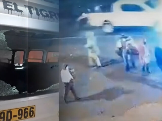 En Juliaca, un grupo de personas fingieron ser pasajeros que esperaban subir a esta combi, pero cuando estuvieron cerca del vehículo, comenzó el ataque. Las cámaras de seguridad de los negocios en el distrito de Caracoto, en Puno, registraron la violencia del hecho.