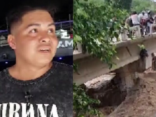 Dos jóvenes se salvaron de morir tras quedar atrapados en las bases de un puente que cruza el río Cumbaza en Tarapoto, el cual aumentó repentinamente su caudal.