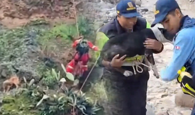 Un rescate de infarto. En Ayacucho, un personal de los bomberos arriesgó su vida amarrándose con una soga para poder rescatar a un perrito que llevaba varios días abandonado en un barranco.