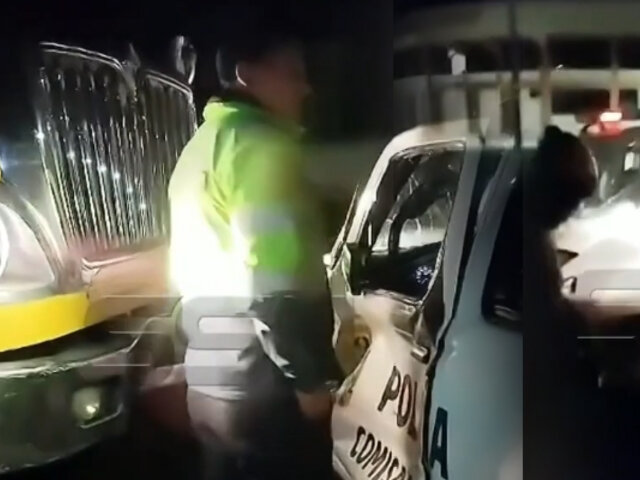 En el Cusco agentes de la Policía Nacional chocaron una camioneta de la misma institución contra un tráiler, tras este accidente de tránsito los efectivos se dieron a la fuga dejando el motor del carro encendido.