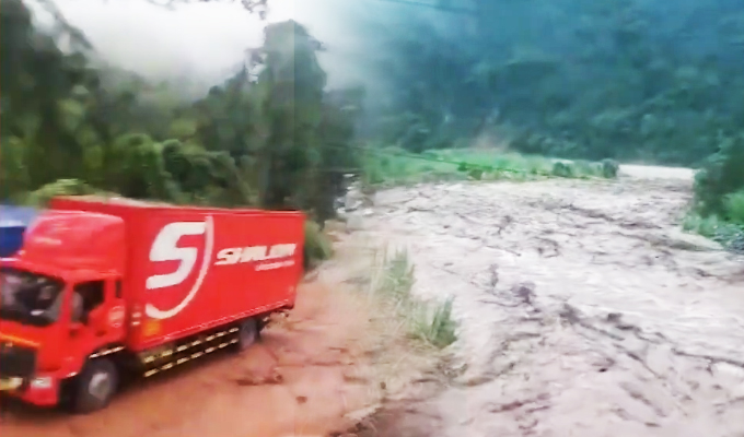 Desborde del río San Pedro inunda carretera en Chanchamayo