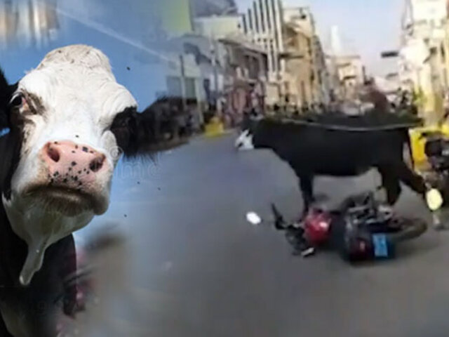 La Plaza de Armas de Ica fue testigo de un inédito suceso. Una vaca que venía siendo trasladada en la parte trasera de un camión logró escaparse causando terror entre los trasuntes y vecinos del lugar.