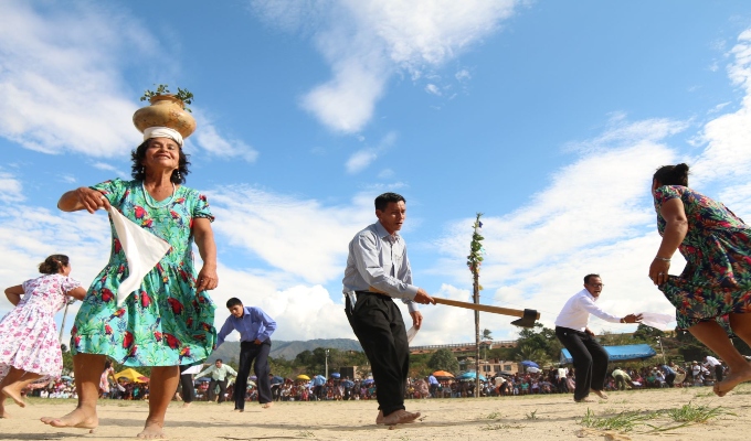 Desde tempranas horas de la mañana, los pobladores de la región se reunieron en la plaza y al ritmo de música con un pañuelo blanco comenzaron la antesala de esta fecha especial.