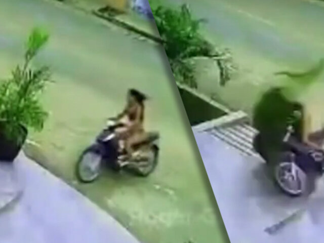 Imágenes impactantes: Mujer vuela por los aires tras estrellar su moto en Tarapoto