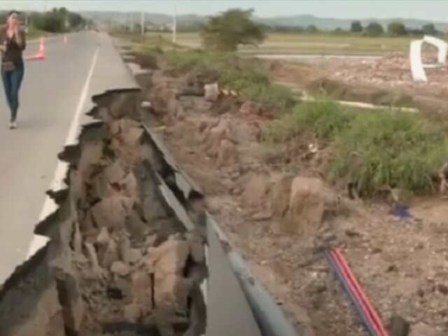 Las cámaras de Buenos Días Perú registraron hundimientos, grietas y postes de telefonía caídos, además de cables de fibra óptica expuestos. El suelo ha sido erosionado por la fuerza del agua, lo que aumenta el riesgo de accidentes.