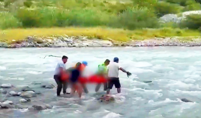Se disponían a atravesar el río utilizando un sistema de transporte rústico, parecido a un teleférico.