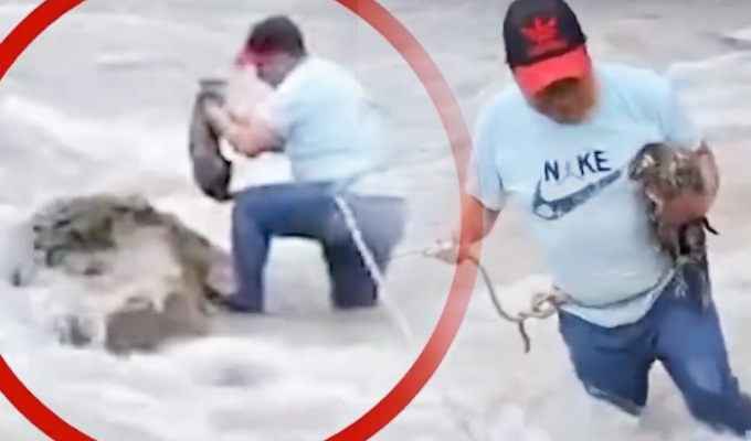 No dudó en poner en riesgo su vida para salvar a la mascota de la furia del caudal del río Viscarra.