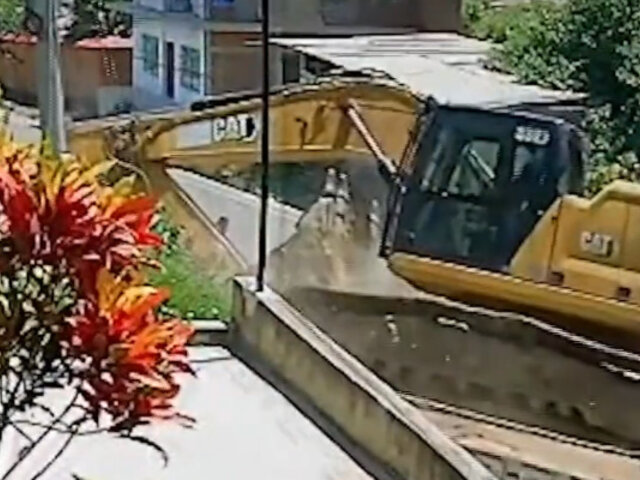 En Tumbes, una cámara de seguridad captó como un camión de carga pesada, que transportaba una excavadora, perdió el control cuando descendía por una pendiente en la carretera del distrito de San Juan de la Virgen.