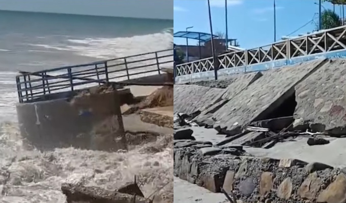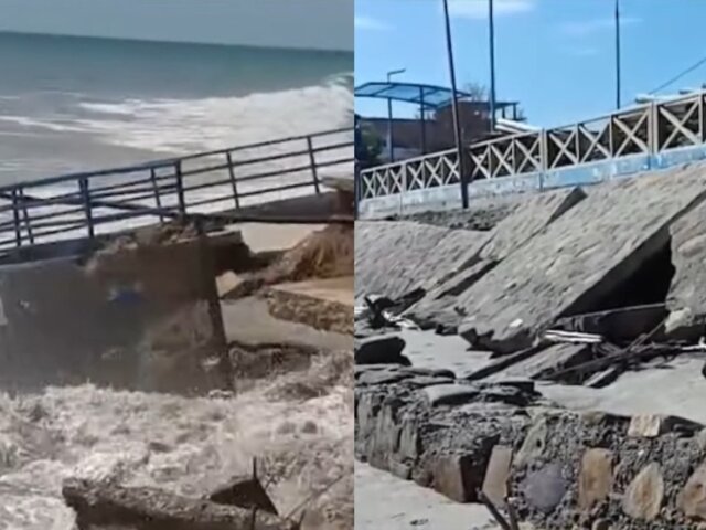 Los fuertes oleajes anómalos que afectan el norte de Perú continúan destruyendo infraestructura en Tumbes. En la playa Zorritos, tres alamedas turísticas colapsaron y estructuras cercanas, incluidas viviendas y postes de alta tensión, están en riesgo inminente.