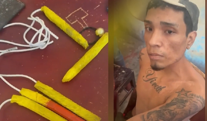 Durante el registro domiciliario, la Policía encontró cinco cargas explosivas, tres segmentos de mecha lenta de aproximadamente diez metros, y un celular con el IMEI adulterado.