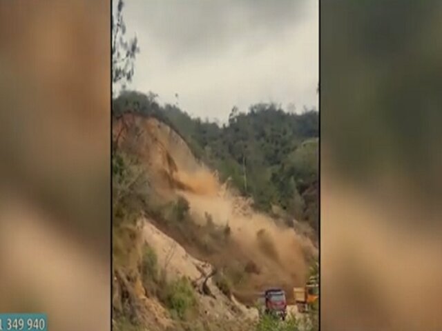 El derrumbe fue captado por un poblador que registró el momento en que el cerro se vino abajo y sepultó a las unidades pesadas.