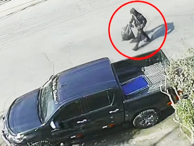 El hecho fue registrado por cámaras de seguridad, donde se observa a un sujeto caminando por la pista hasta acercarse al vehículo y lanzar el artefacto explosivo, el cual detona unos minutos después.