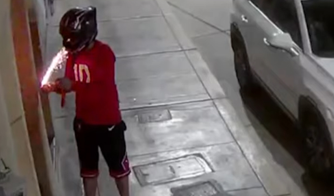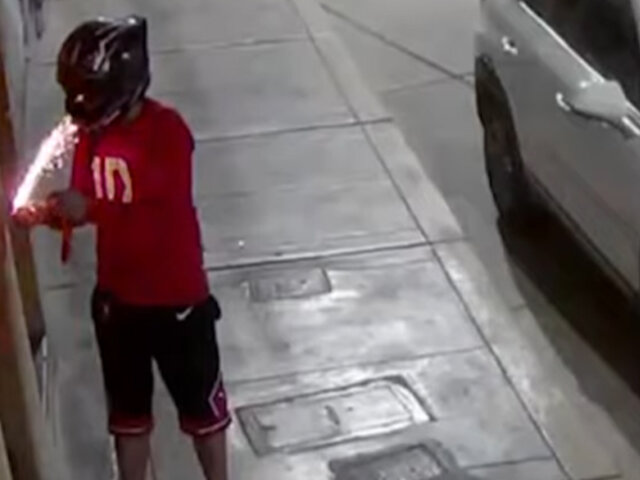 En la ciudad de Tumbes, cámaras de seguridad captaron a un delincuente cuando detonó un artefacto explosivo en la puerta de una vivienda, ubicada en el barrio de Bellavista.