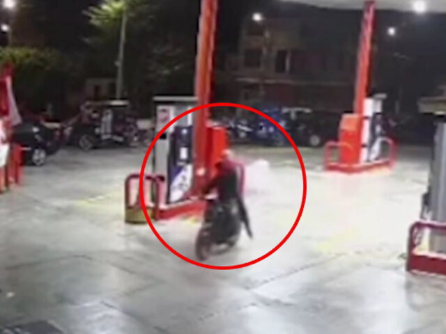 Cámaras de seguridad de un grifo en Chiclayo captaron a dos sujetos a bordo de una motocicleta llegando a las inmediaciones del establecimiento para lanzar un artefacto explosivo, sin embargo, un trabajador logró apagar el fuego.