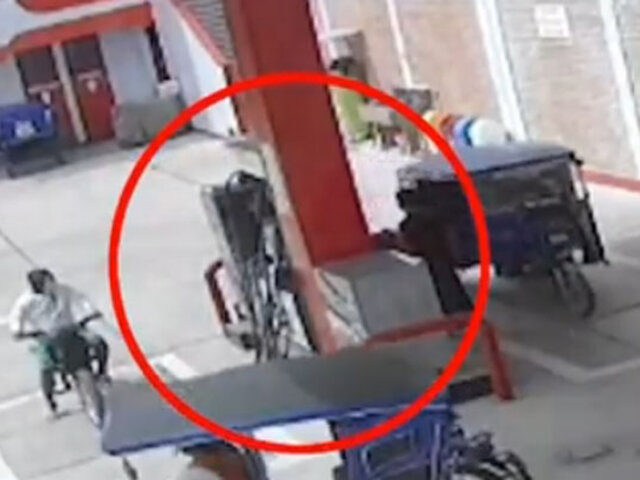 En la ciudad de Piura, cámaras de seguridad de un grifo captaron los precisos momentos cuando dos delincuentes con armas de fuego asaltan a los trabajadores y se llevan el dinero de la ganancia.