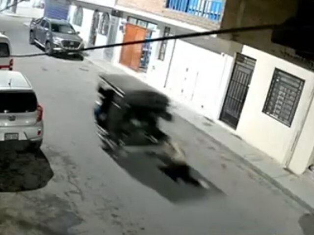Dos delincuentes a bordo de una mototaxi arrastraron a una mujer cuando le robaron su celular y documentos en esta calle de la ciudad de Chiclayo.
