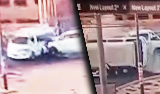 Cámaras de seguridad captaron el momento en que la camioneta que iba a gran velocidad impacta contra la combi de transporte público