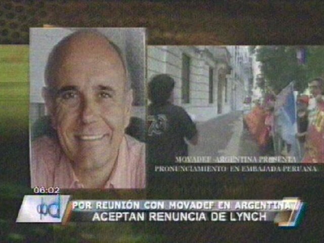 Lynch remitió una carta al presidente Humala para dimitir al cargo de representante del gobierno peruano en Argentina. En dicha misiva, no reconoce como error por haberse reunido con miembros del Movadef y afirma que la cancillería sabia de esta reunión.