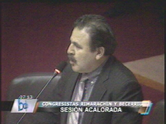 Rimarachin acusó a los fujimoristas de hacer campaña mediática a favor del indulto a lo que el legislador Héctor Becerril le recordó su pasado fujimori.