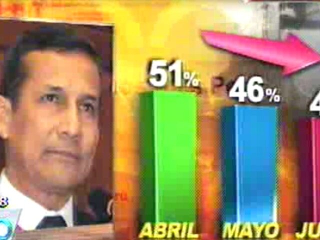 Los resultados de las últimas encuestas de Ipsos Apoyo revelaron que el nivel de desaprobación al presidente de la República habría finalmente superado al nivel de respaldo a su gestión. En solo dos meses, la aprobación a Humala sufrió un descenso de 10 puntos porcentuales y continúa en descenso por cuarto mes. Según Alfredo Torres, director de Ipsos Perú, las causas de esta baja serían los actos de reglaje denunciados, la negativa de indulto a Alberto Fujimori y la polémica con Alan García sobre la denominada "reelección conyugal".