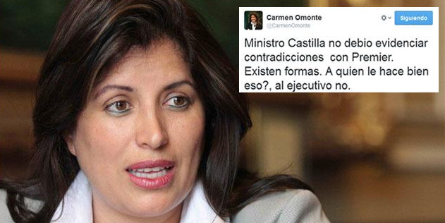 Una polémica se ha iniciado luego de los contradictorios mensajes de la ahora ministra de la Mujer y Poblaciones Vulnerables, Carmen Omonte. La congresista indicó en Twitter, apenas unas horas antes de su nombramiento su descontento con las declaraciones del ministro de Economía, Luis Castilla, en las que se evidenciaron contradicciones con el ex Premier César Villanueva. Y una vez designada en el cargo, dio gracias a Dios por la confianza recibida por parte del presidente Ollanta Humala. Con esto, algunos se atreven a afirmar que recién le propusieron el cargo la tarde del último lunes.