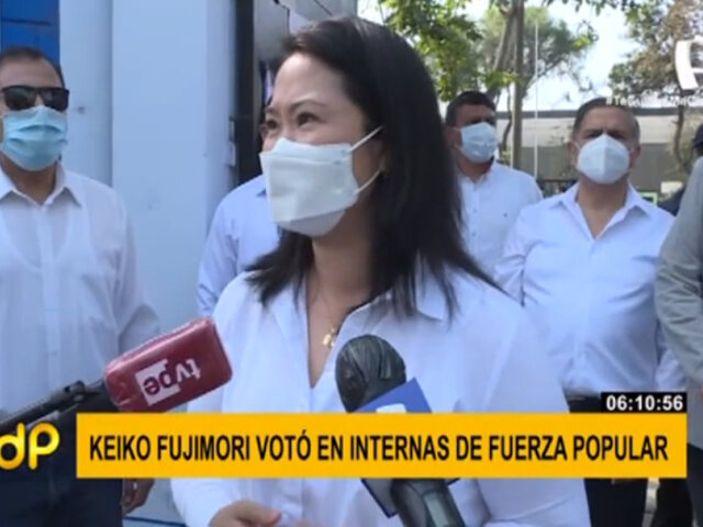 La primera en acudir a su centro de votación fue Keiko Fujimori, precandidata a la presidencia del Perú para el 2021, por la bancada de Fuerza Popular, señaló que espera que la democracia salga fortalecida y no haya ningún tipo de exclusiones.