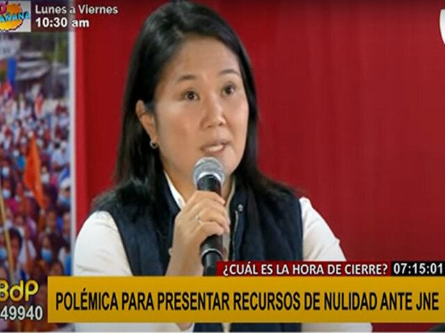 Continúa la polémica sobre el plazo máximo para presentar las solicitudes de nulidad ante el Jurado Nacional de Elecciones (JNE). Dicha entidad estableció que el plazo culminaba el miércoles 9 de junio a las 20 horas, sin embargo, algunas agrupaciones políticas afines a Fuerza Popular no coinciden con este límite en el horario.
