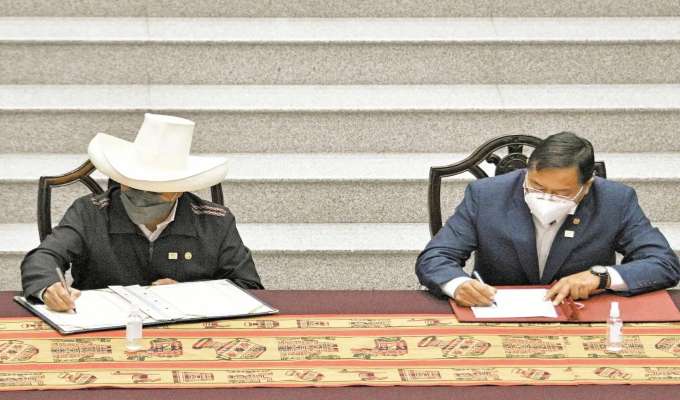 Presidente Castillo firmó acuerdos con Bolivia para masificar el gas natural