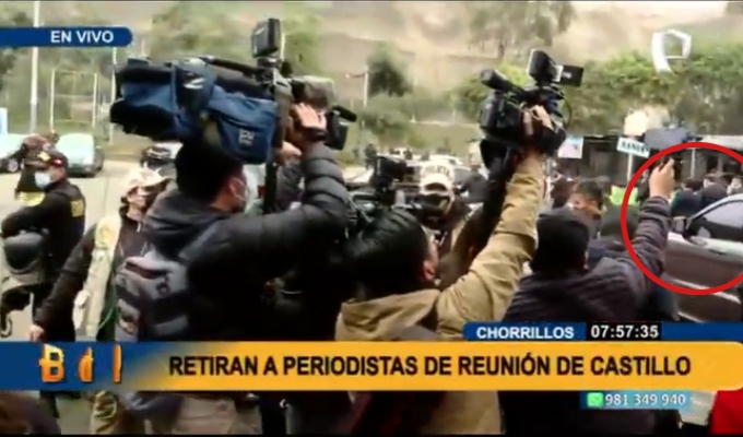 Además, en el instante en que el jefe de Estado se retiraba del lugar, periodistas fueron bloqueados por personal policial para evitar las preguntas de los medios.