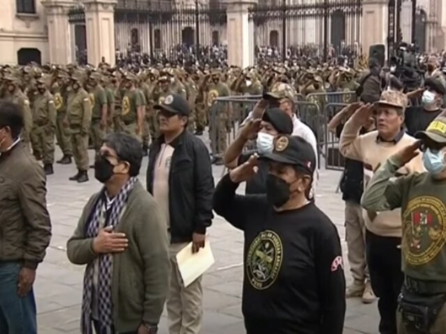Un numeroso grupo de reservistas llegaron a Palacio de Gobierno para reunirse con el presidente de la República, Pedro Castillo, y realizar varios pedidos al Gobierno, entre ellos que se les brinde soporte económico y medallas de reconocimiento como Defensores de la Patria.