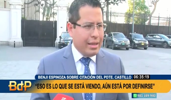 Benji Espinoza dice que aún es incierta la asistencia de Castillo al Congreso para vacancia