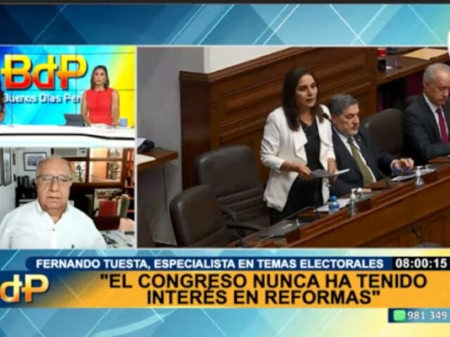 En entrevista con Buenos Días Perú, el especialista en temas electorales Fernando Tuesta Soldevilla dio su lectura sobre el borrador del texto sustitutorio del Congreso de la República para un adelanto de elecciones en 2024.