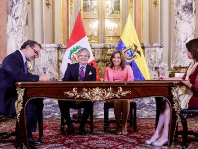 La presidenta de la República, Dina Boluarte Zegarra y el mandatario de Ecuador, Guillermo Lasso Mendoza, se reunieron este miércoles 25 en Palacio de Gobierno para firmar las notas reversales que amplían la vigencia del Plan Binacional de Desarrollo de la Región Fronteriza Perú-Ecuador.