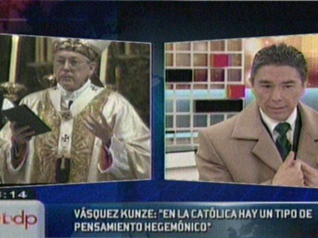 El psicoanalista Jorge Bruce y el columnista del diario Perú21, Ricardo Vásquez coincidieron en que la pugna existente entre las autoridades de la Pontificia Universidad Católica del Perú y la Iglesia Católica se debe a que ambos buscan apoderarse de los bienes materiales y económicos de este centro de estudios.