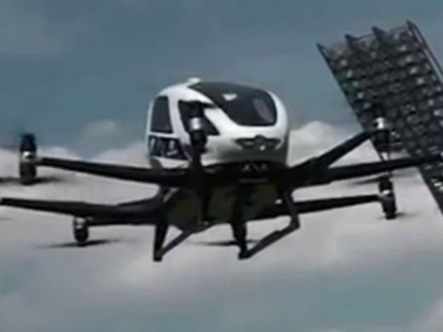 El EHang 216, un dron biplaza de 16 hélices fabricado por una empresa china, aspira a convertirse en el taxi del futuro.