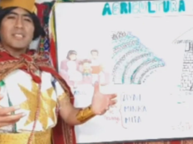 Empezó su clase hablando sobre la agricultura, actividad que permitía el cultivo de plantas alimenticias y tubérculos con el objetivo de combatir la desnutrición. Recordó también que estos productos eran sembrados en los andenes.