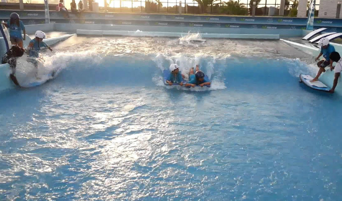 Para quienes buscan aprender cómo dominar las olas, el renovado parque temático ofrece una adrenalínica variante sobre la tabla: el flowboarding o práctica del surf.