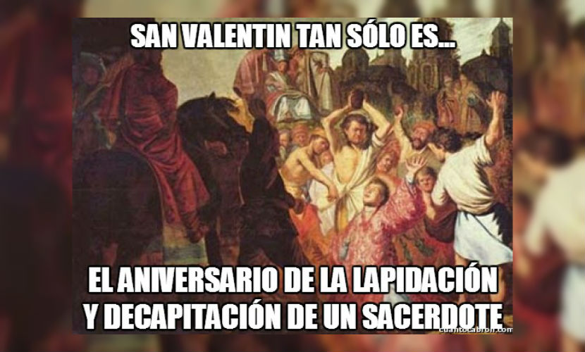Entonces, un sacerdote cristiano llamado Valentín, viendo que esto era injusto, comenzó a casar secretamente a los jóvenes enamorados. Tras ser descubierto, y pese a que gozaba de gran popularidad, fue encarcelado y ejecutado.