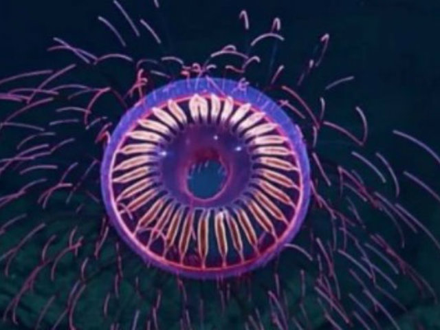 Los canales radiales que conducen los nutrientes a través de la campana forman un patrón de explosión estelar que refleja las luces con destellos brillantes de amarillo y rosa, pero sin luces artificiales (pues no genera luz), su belleza pasaría desapercibida en la oscuridad de lo profundo.