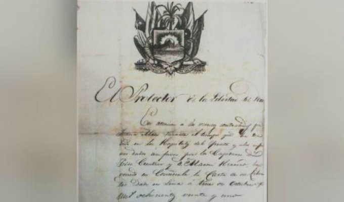 El Archivo General de la Nación reportó la pérdida de un importante manuscrito del sigo XIX perteneciente al Libertador Don José de San Martín, donde concede la libertad a una esclava por su apoyo en la gesta de la independencia.