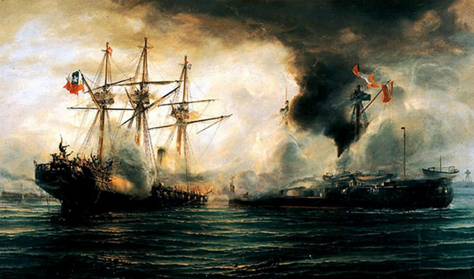 Conmoción en todo el Perú. Tras una hora y media de intenso combate en el mar, las fuerzas chilenas conformadas por los buques del Cochrane, Blanco Encalada y Covadonga acaban de secuestrar esta mañana al monitor Huáscar en Punta Angamos.