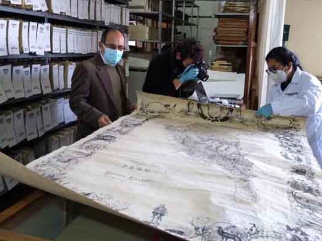Al respecto el director de esta oficina, Adolfo Zegarra Zavala, afirmó que expertos recogieron muestras del mapa para determinar el material, posibles daños por su antigüedad, etc., para elaborar un protocolo de restauración, aunque por su apariencia está en estado regular de conservación.