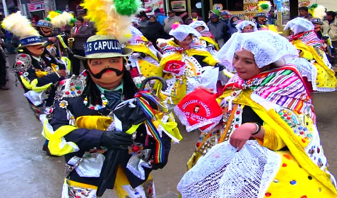 Representa un baile de carácter humorístico de salón que trajeron los españoles, parodiados con pasos elegantes, realizado por personajes caracterizados por una vestimenta con exagerada decoración y una máscara, en referencia a la aristocracia española del siglo XVIII.