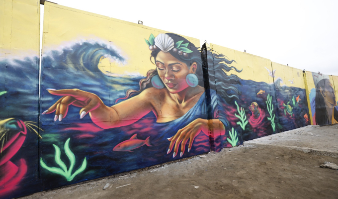 La obra colectiva, de 180 metros cuadrados, está inspirada en la historia pesquera artesanal, la identidad marina y la memoria chalaca. Fue realizada por diez artistas visuales seleccionados a través de una convocatoria pública, quienes crearon murales individuales, con el objetivo de fortalecer la identidad local, recuperar espacios públicos y visibilizar la riqueza cultural del Primer Puerto.