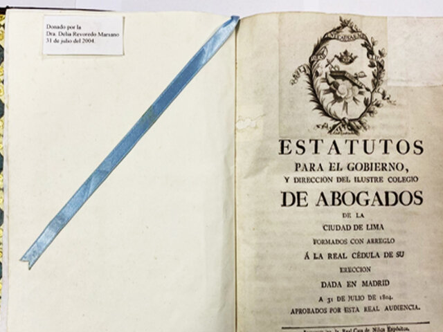 El Ministerio de Cultura (Mincul) declaró como Patrimonio Cultural de la Nación a una unidad bibliográfica de “Estatutos para el gobierno, y dirección del ilustre Colegio de Abogados de la ciudad de Lima formados con arreglo a la Real Cédula de su erección dada en Madrid a 31 de julio de 1804, aprobados por esta Real Audiencia” (1808), perteneciente a la biblioteca del Colegio de Abogados de Lima, por su valor histórico e intelectual para la cultura peruana.